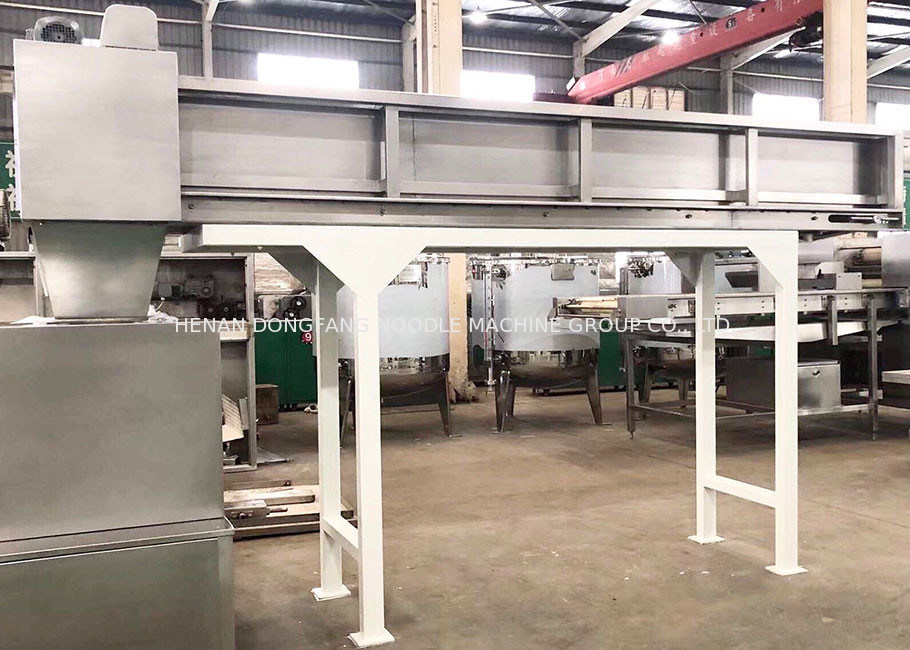 튀김 라면 생산 라인은 소금물 믹서로 구성됩니다, 소금물 길이 측정기, 이중 축 믹서가 컨베이어, 롤러, 다층 찜통, 라면 절단기, 프라이팬, 냉각 기관, 컨베이어와 다른 단위 기계를 익힙니다.