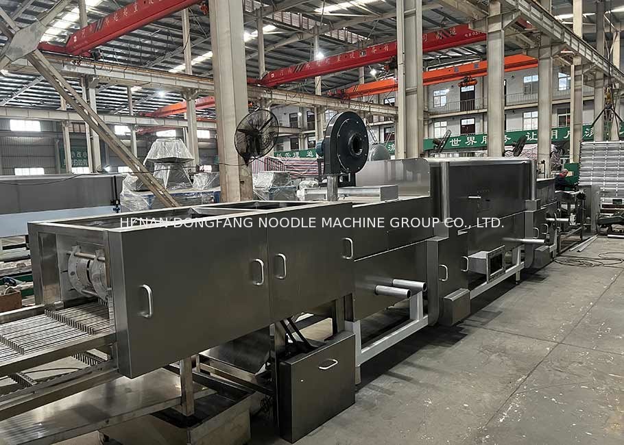 튀김 라면 생산 라인은 소금물 믹서로 구성됩니다, 소금물 길이 측정기, 이중 축 믹서가 컨베이어, 롤러, 다층 찜통, 라면 절단기, 프라이팬, 냉각 기관, 컨베이어와 다른 단위 기계를 익힙니다.